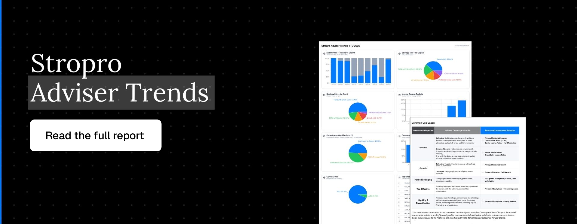 What’s working on Stropro is simple: income you can specify, entries you pre‑agree, and growth with explicit protection settings. Defined‑outcome structures turn those into portfolio rules that can be implemented with precision and personalisation for HNW investor portfolios.